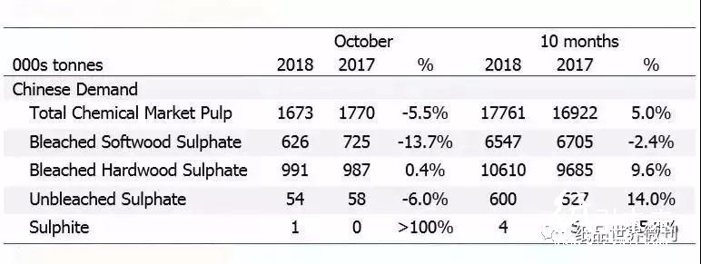 2018年10月全球往中國漂白針葉漿發(fā)運量為62.6萬噸,同比下滑13.7%,預(yù)計該批貨到港時間為12月至2019年1月。預(yù)計11-12月發(fā)運量亦將延續(xù)同比大幅下滑趨勢。為何有這樣的趨勢?因為中國價格不好。故預(yù)計2019年一季度漂針到港量將出現(xiàn)同比大幅下滑。