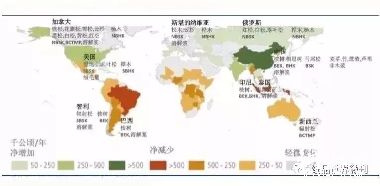 三、主要商品木漿產(chǎn)能所在地森林凈減少趨勢嚴(yán)重,木片資源呈匱乏趨勢。