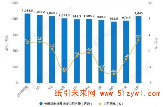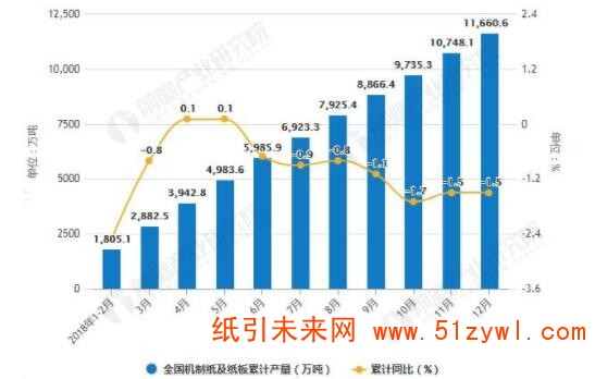 2018年1-12月全國機制紙及紙板產(chǎn)量統(tǒng)計及增長情況