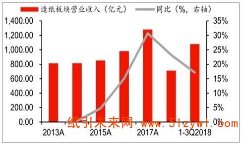 2018年前三季度造紙板塊實現(xiàn)營收1079億元,同比增長17%;實現(xiàn)歸母凈利潤100億元,同比增長14%。三季度旺季需求不及預期,成品紙價格出現(xiàn)回調,同時原材料價格高位震蕩,Q3單季板塊營收增速回落至7%,歸母凈利增速下滑至-0.2%。