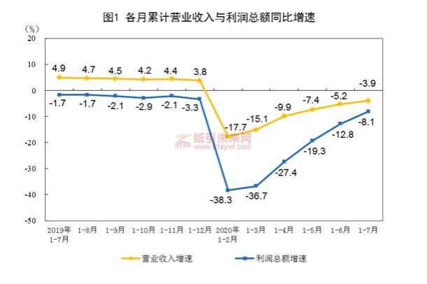 核心提示:紙引未來(lái)網(wǎng)訊 8月27日,國(guó)家統(tǒng)計(jì)局發(fā)布2020年1~7月份全國(guó)規(guī)模以上工業(yè)企業(yè)利潤(rùn)情況。1—7月份,全國(guó)規(guī)模以上工業(yè)企業(yè)實(shí)現(xiàn)利潤(rùn)總額31022.9億元,同比下降8.1%,降幅比1—6月份收窄4.7個(gè)百分點(diǎn)。