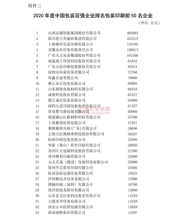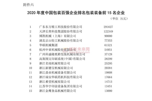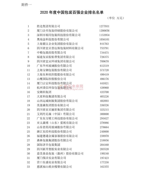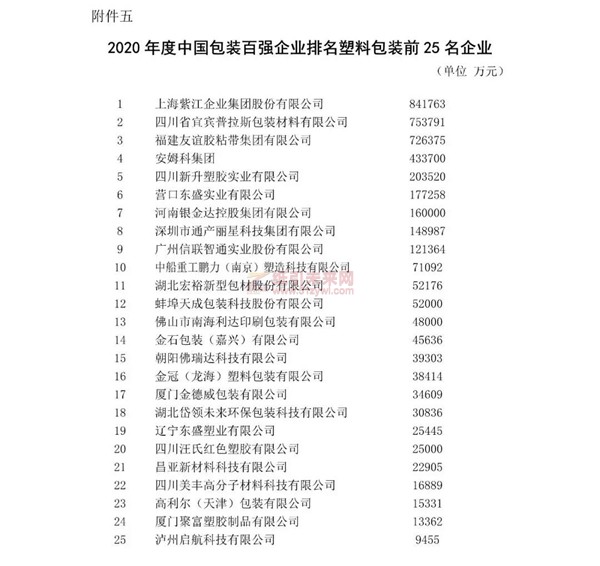 2020年度中國包裝百強企業(yè)排名公示