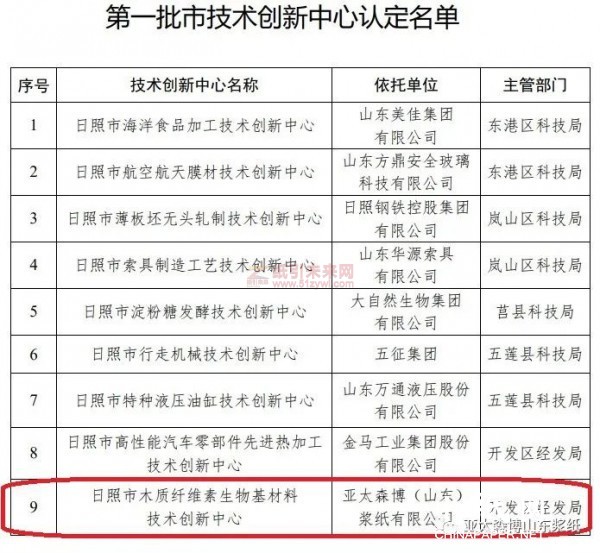 喜報(bào)!亞太森博入選第一批日照市技術(shù)創(chuàng)新中心名單