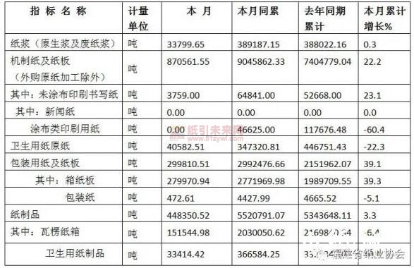 福建省造紙工業(yè)2021年11月份產(chǎn)品累計(jì)產(chǎn)量表