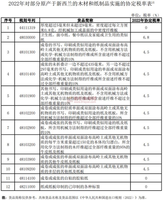 4月7日起我國將對部分原產(chǎn)于新西蘭的木材和紙制品實施協(xié)定稅率